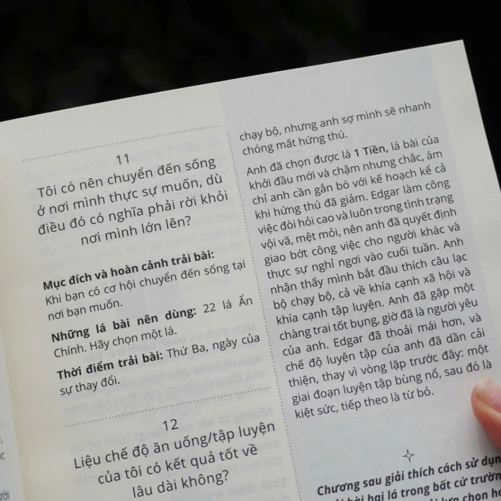 Cuộc sống không chỉ có những câu hỏi giản đơn mà có muôn vàn tình huống khó đỡ. Có những câu hỏi bạn không dám hỏi Tarot reader của mình, hoặc những câu hỏi lạ lùng chưa từng thấy mà bạn nhận được từ người khác. Dù bạn đang tìm cách xoa dịu một nỗi bất an kéo dài, cân nhắc một quyết định quan trọng như mua nhà hay phẫu thuật, hoặc cảm thấy lạc lối trong một mối quan hệ tình cảm đầy biến động,… bạn đều có thể tìm thấy những trải bài khó tin nhất trong cuốn sách này.