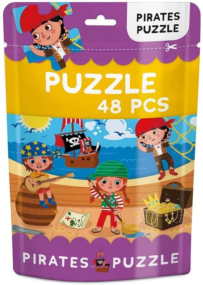 This beautifully illustrated 48 piece jigsaw puzzle is the perfect introduction to big puzzles for little children! Featuring adventurous pirates illustration that kids will love this puzzle will help promote hand-eye co-ordination, motor skills and recognition while having fun with family! It comes in a handy resealable bag too!