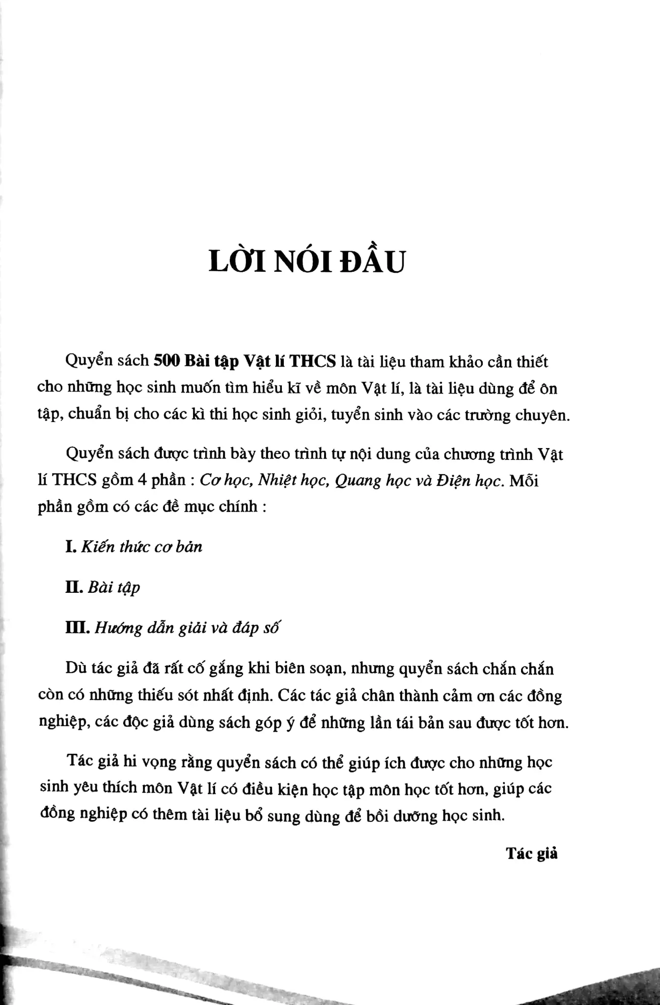 500 Bài Tập Vật Lí Trung Học Cơ Sở (Dùng Cho Các Bộ SGK Hiện Hành)