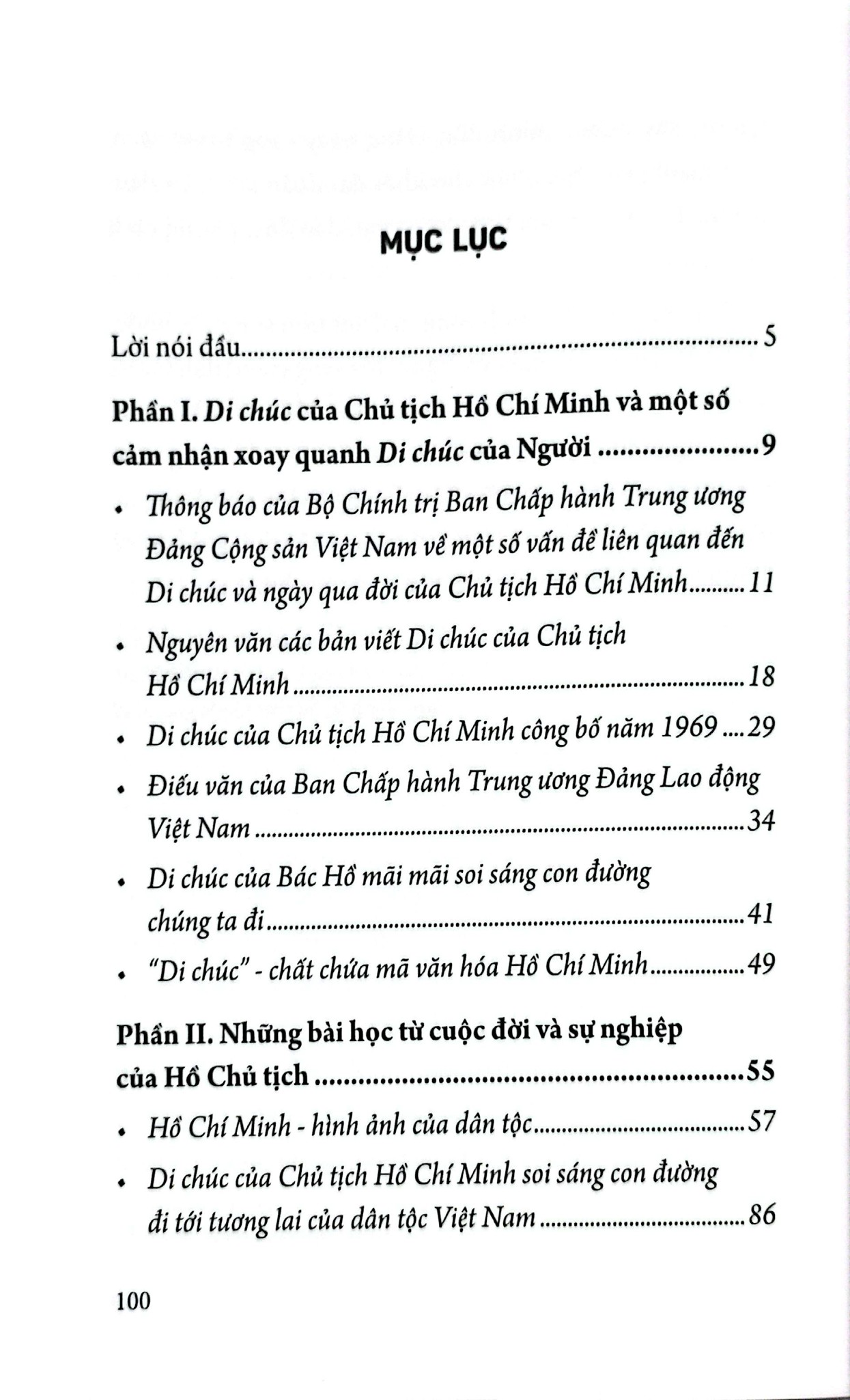 Cuốn sách là tài liệu tổng hợp55 Năm Thực Hiện Di Chúc Của Chủ Tịch Hồ Chí Minh bao gồm di chúc cùng một số cảm nhận xoay quanh di chút của Người. Những bài học và sự nghiệp của Hồ Chủ Tịch.