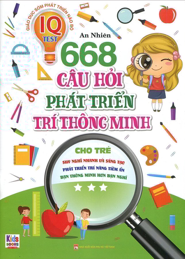 Bộ sách 668 CÂU HỎI PHÁT TRIỂN TRÍ THÔNG MINH CHO TRẺ giúp phát triển IQ, EQ thông qua những trò chơi toán học logic, phát huy tối đa khả năng nhận thức, tư duy phân kỳ, trí tưởng tượng, tri giác về không gian, phán đoán suy luận một cách khoa học về những sự vật, sự việc trong tự nhiên. Bộ sách sẽ là nhũng bài học đầy thú vị để bố mẹ và con cái có sự tương tác với nhau. Đồng thời nâng cao năng lực tư duy, tính chính xác và rèn luyện độ kiên trì cho trẻ.