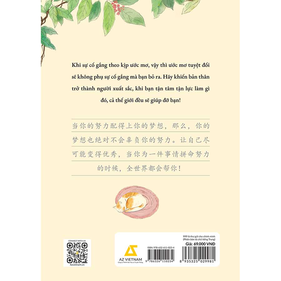 Khi cuộc sống ngoài kia đã quá vội vàng, chúng ta càng cần dành ra những khoảng lặng nhỏ bé để tìm về chính mình, yêu lấy bản thân, đơn giản như ngồi đọc một cuốn sách hay ghi chép lại những điều nhỏ nhặt mà ấm áp mỗi ngày. Và cuốn sách “999 lá thư gửi cho chính mình - Phiên bản tô chữ tiếng Trung” chính thức được ra mắt mang theo sứ mệnh gửi gắm những điều bình dị, giản đơn đến những độc giả mến thương vẫn luôn nỗ lực không ngừng nghỉ ở thế giới ngoài kia. Chúng mình tin rằng những trích dẫn tiếng Việt hay nhất đính kèm với phần tô chữ tiếng Trung có trong cuốn sách này sẽ không làm bạn đọc phải thất vọng.