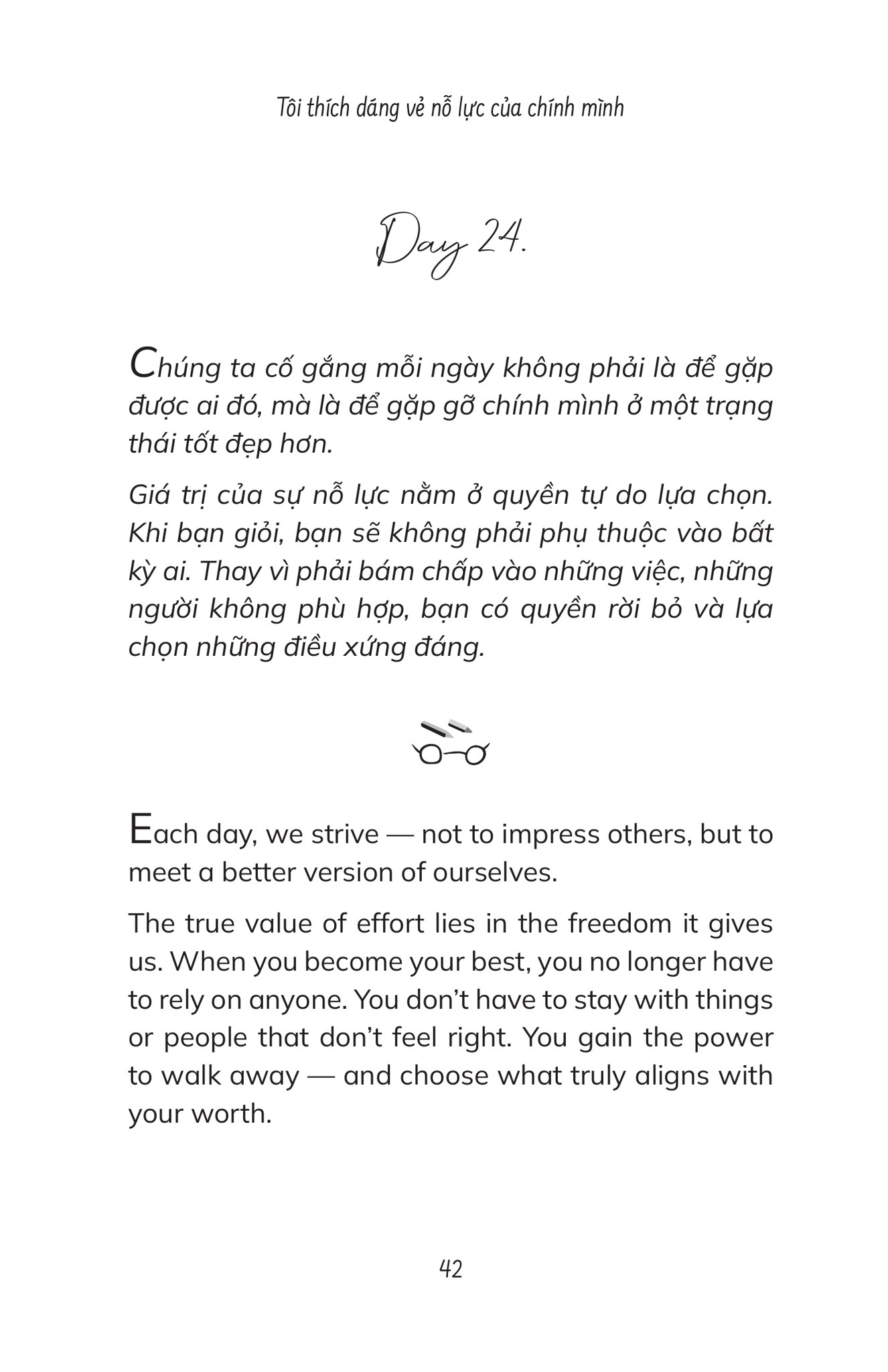 Được chấp bút bằng tất cả trải nghiệm và sự chân thành của tác giả Lily Trương, cuốn sách “Tôi thích dáng vẻ nỗ lực của chính mình – A Diary of Silent Effort” hứa hẹn sẽ trở thành người bạn tri kỷ, đồng hành cùng bạn trên hành trình chạm đến ước mơ.