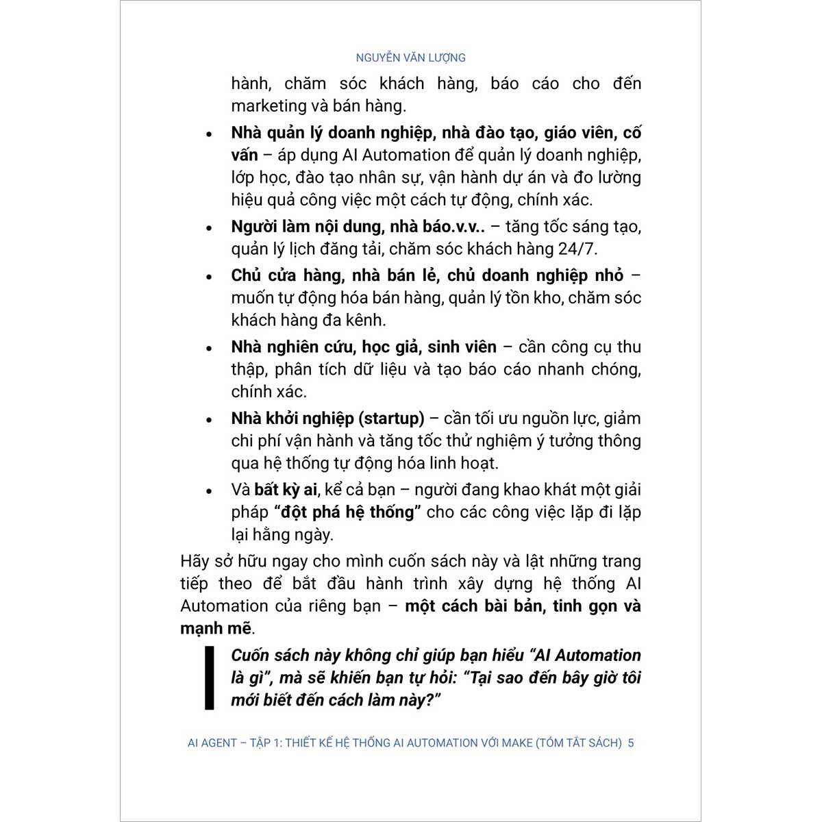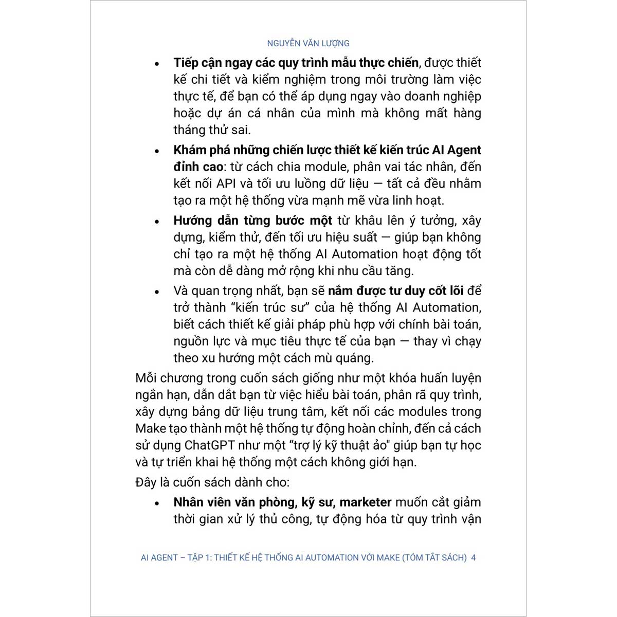 Tất cả sẽ có trong cuốn AI AGENT – Tập 1: Xây dựng Hệ thống AI Automation với Make.