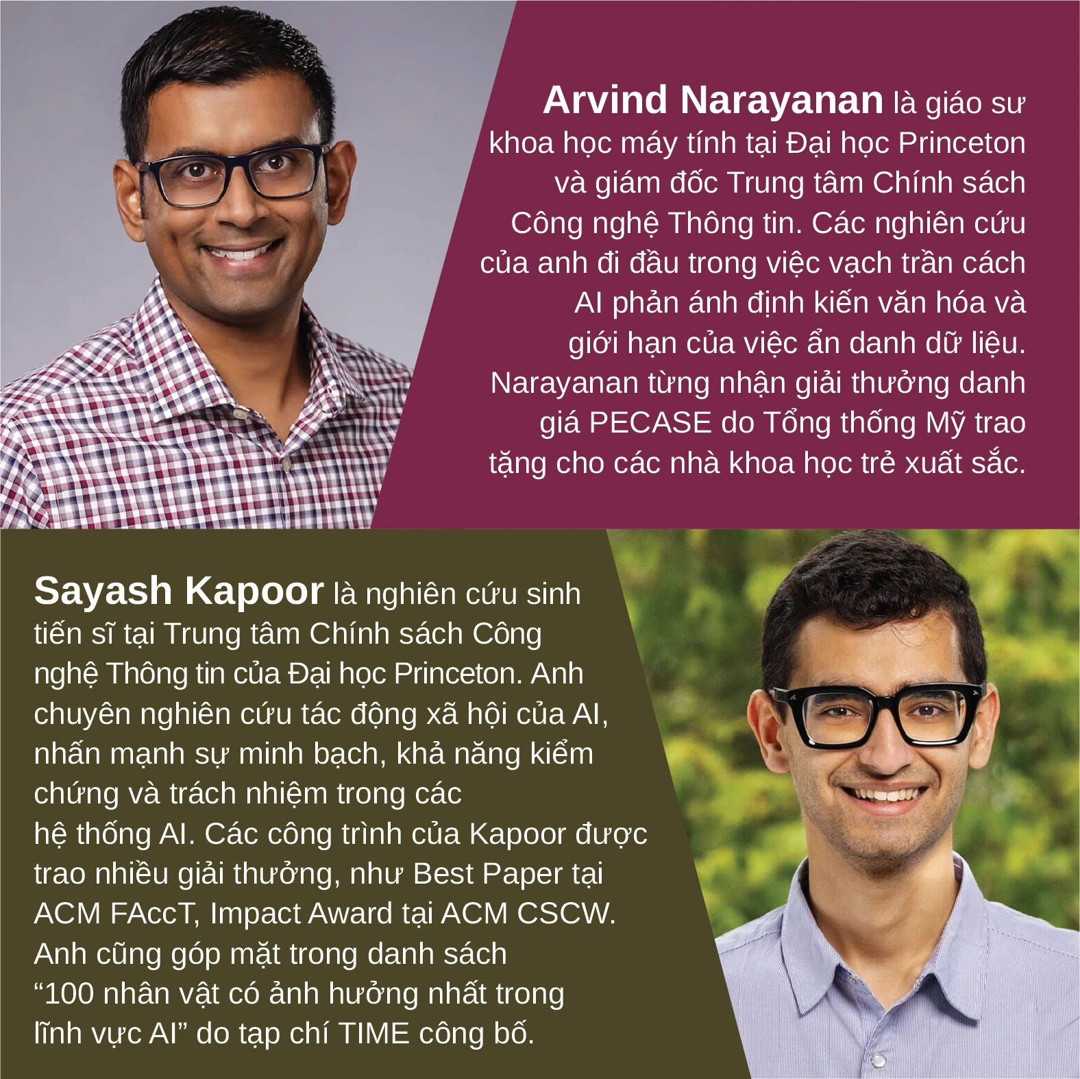 - Tác giả uy tín: Arvind Narayanan và Sayash Kapoor là hai nhà nghiên cứu hàng đầu, thuộc top 100 nhân vật có ảnh hưởng nhất trong lĩnh vực AI do TIME bình chọn.