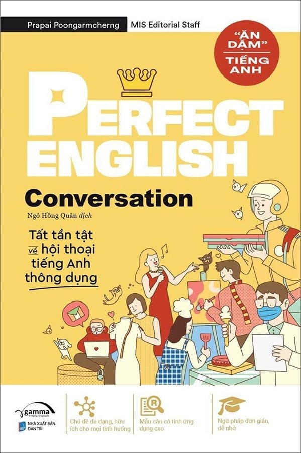 Đúng như tên gọi "Ăn Dặm" Tiếng Anh của bộ sách, Perfect English Conversation tập trung vào các đoạn hội thoại đơn giản dành cho người mới bắt đầu làm quen với tiếng Anh. Cuốn sách bao gồm 307 bài học, được chia thành 25 chủ điểm gần gũi, quen thuộc với cuộc sống thường ngày như: cách chào hỏi, cách hỏi đường, trao đổi khi đi mua sắm và bán hàng, chia sẻ về sở thích và công việc, thậm chí là cả ngỏ lời làm quen và cầu hôn. Với cách tiếp cận đơn giản và dễ hiểu, kèm hình minh họa sinh động, cuốn sách sẽ giúp người học dễ dàng nắm bắt được các mẫu câu hội thoại thông dụng để có thể nhanh chóng học tập và ứng dụng vào cuộc sống.