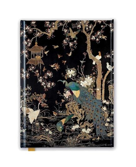 Ashmolean Museum: Embroidered Hanging with Peacock - NotebookPart of a series of exciting and luxurious Flame Tree Notebooks. Combining high-quality production with magnificent fine art, the covers are printed on foil in five colours, embossed then foil stamped. And they're powerfully practical: a pocket at the back for receipts and scraps, two bookmarks and a solid magnetic side flap. These are perfect for personal use and make a dazzling gift. Ashmolean Museum: Chinese Embroidered Hanging with Peacock.The peacock was emblematic not of glory but of compassion and care, and so it would appear to be in this intricate hanging. What we might expect to be its show-stealing splendour is almost upstaged by the pure-white peonies, lilies and roses all around. The eyes of its furled-up tail, though beautiful, blend into the background as though they were another flower.