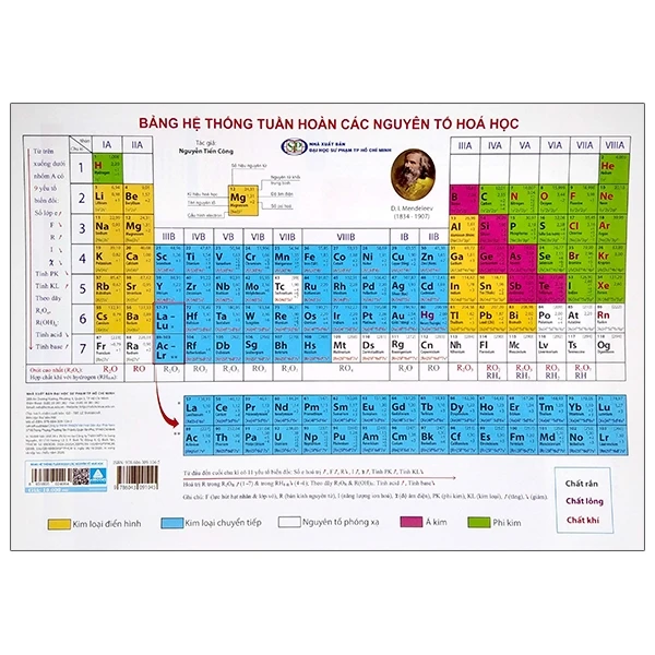 Bảng Tuần Hoàn Các Nguyên Tố Hóa Học thể hiện quy luật biến đổi trong bảng tuần hoàn, được trình bày rõ ràng, dễ tra cứu. Bảng này cập nhật đầy đủ thông tin gồm có số hiệu nguyên tử, khối lượng, ký hiệu nguyên tử, độ âm điện và đặc tính các nguyên tố.