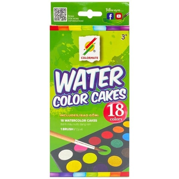 Bánh Màu Nước Dạng Nén 18 màu được đựng trong khay nhựa giúp dễ dàng nhận biết màu và pha trộn các màu với nhau.