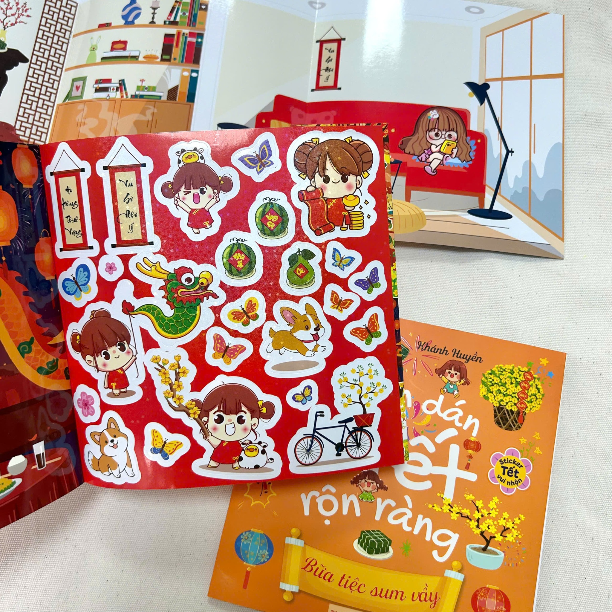 Bộ sách "Bé Dán Dán Đón Tết Rộn Ràng" là một bộ sách dành cho trẻ em với chủ đề Tết Nguyên Đán, giúp bé làm quen với các hoạt động, hình ảnh, và phong tục đón Tết qua các trò chơi dán sticker. Bộ sách này không chỉ mang tính giải trí mà còn giáo dục trẻ về những giá trị văn hóa truyền thống của người Việt trong dịp Tết.