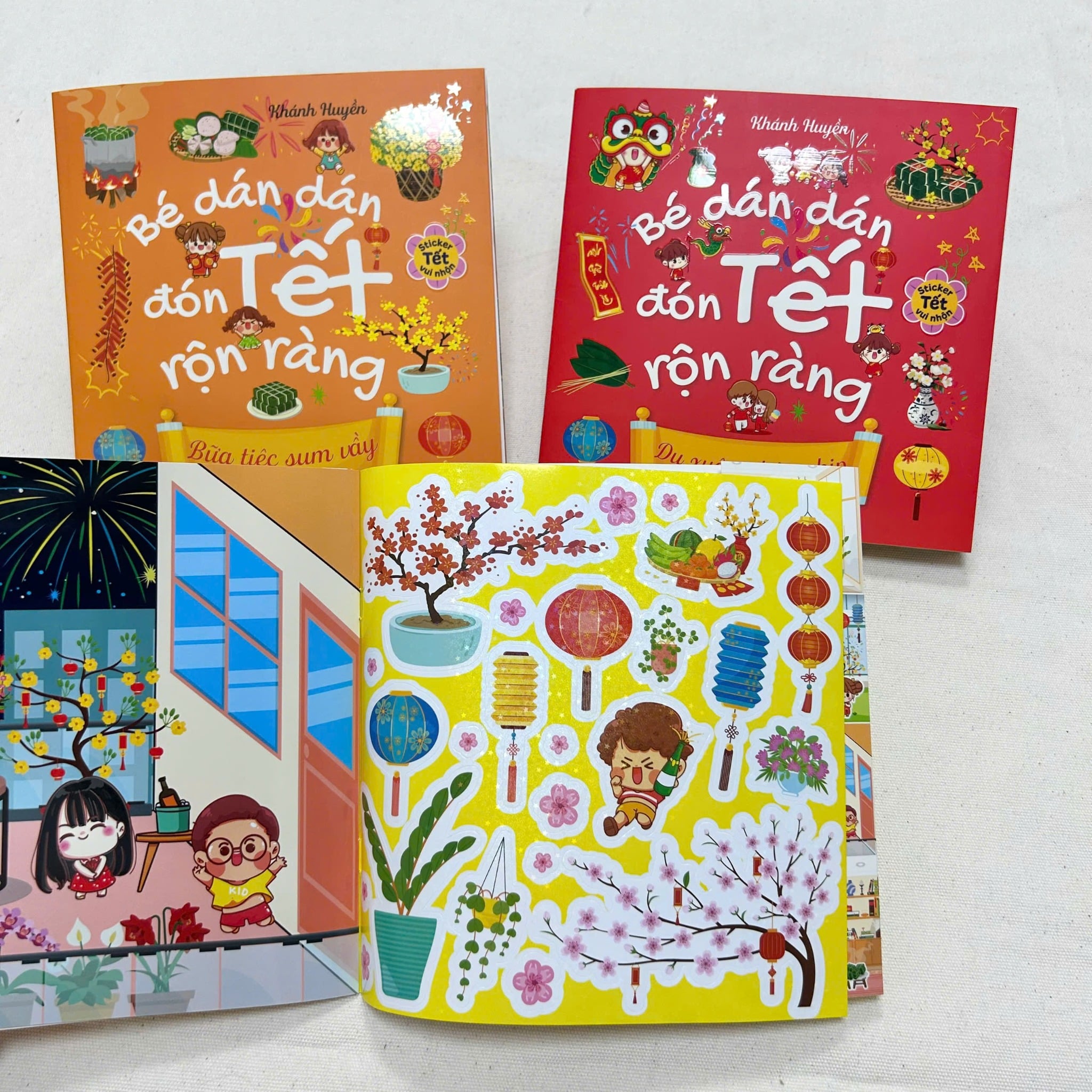 Bộ sách "Bé Dán Dán Đón Tết Rộn Ràng" là một bộ sách dành cho trẻ em với chủ đề Tết Nguyên Đán, giúp bé làm quen với các hoạt động, hình ảnh, và phong tục đón Tết qua các trò chơi dán sticker. Bộ sách này không chỉ mang tính giải trí mà còn giáo dục trẻ về những giá trị văn hóa truyền thống của người Việt trong dịp Tết.