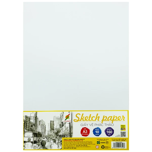 Bộ 10 Tờ Giấy Vẽ Phác Thảo A3 160gsm Sketch Paper - Colormate 113103