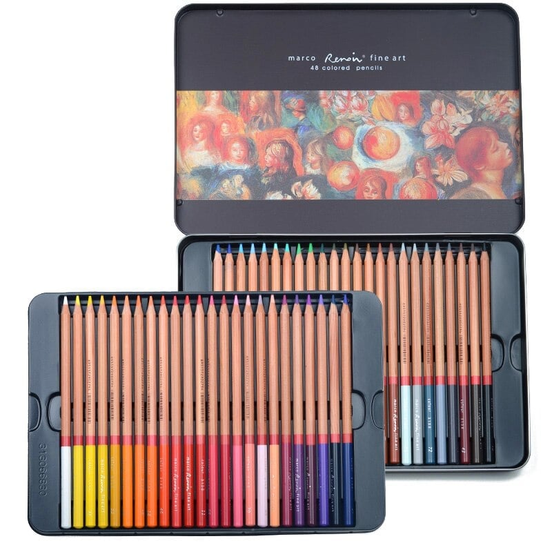 Chì Màu Khô Marco Renoir Bộ 48 Màu (Hộp Thiếc)