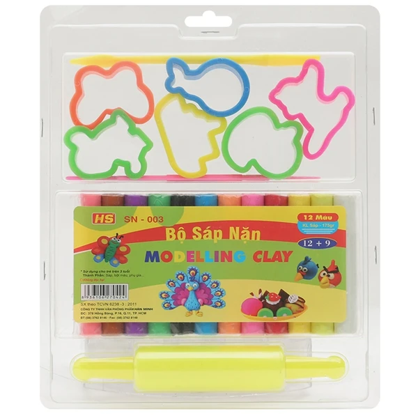 Bộ Sáp Nặn 12 Màu SN-003 còn được trang bị một chiếc lăn nhựa và 6 khuôn tạo hình ngộ nghĩnh. Với bộ dụng cụ này, các bé có thể nhanh chóng làm quen với môn đất nặn, dễ dàng tạo hình theo ý thích.