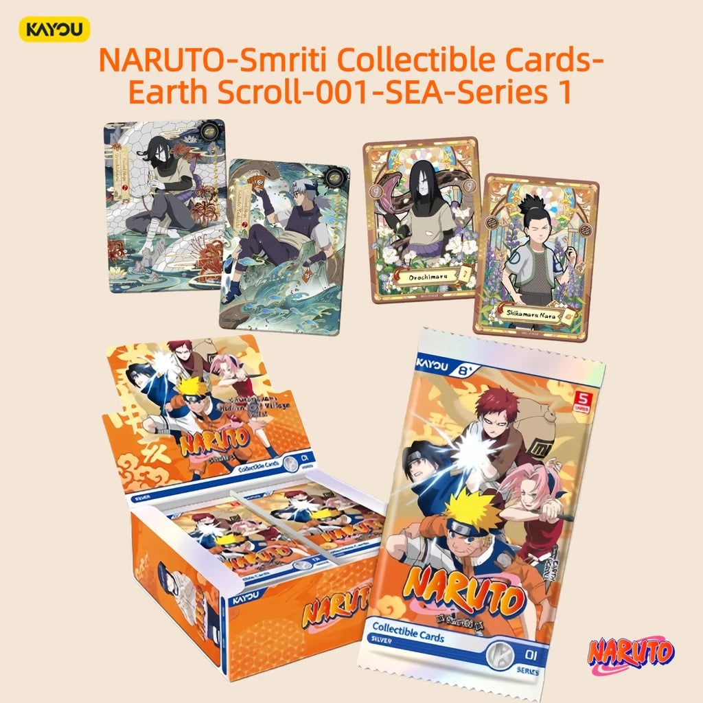 Bộ thẻ sưu tầm KAYOU Naruto Smriti – Earth Scroll 001 – Series 1 (Mã HH00016) là dòng thẻ bài Trading Card Game (TCG) bản tiếng Anh chính thức của Kayou. Đây là phiên bản tiếp nối sau dòng "Heaven Scroll", tập trung vào các nhân vật và sự kiện tiếp theo trong cốt truyện Naruto.Card bo góc Naruto Kayou là sản phẩm sưu tầm cực hot dành cho fan Naruto. Thiết kế bo góc an toàn, màu sắc nổi bật và in nổi sắc nét, thẻ mang hình ảnh các nhân vật nổi tiếng như Naruto, Sasuke, Kakashi…