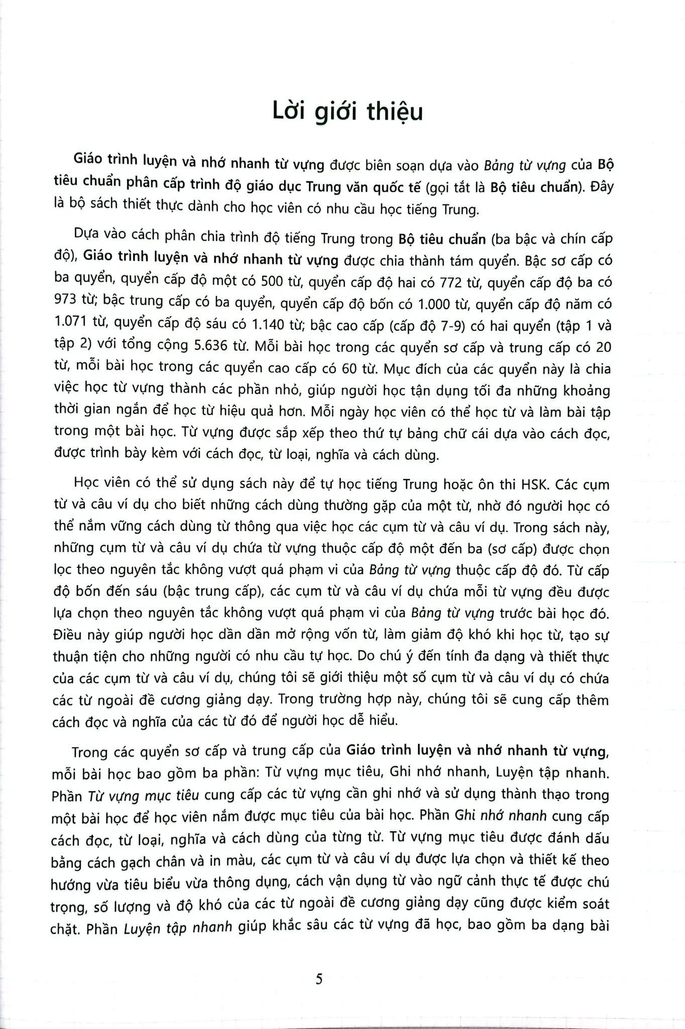 Sách giới thiệu toàn bộ từ vựng trong Bảng từ vựng của Tiêu chuẩn các cấp độ tiếng Trung trong giáo dục tiếng Trung quốc tế, mỗi từ đều có phiên âm, từ loại, nghĩa và rất nhiều ví dụ để người học nắm vững cách dùng từ.