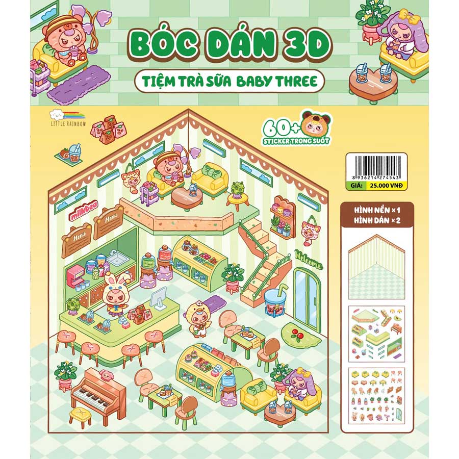 Mang cả không gian nghệ thuật sống động vào tay bé với Bóc dán 3D Tiệm Trà Sữa Baby Three! Không cần cắt dán phức tạp, các bạn nhỏ vẫn có thể tạo nên những mô hình tiệm trà sữa xinh với thiết kế đa tầng và hiệu ứng thị giác chân thực. Từng chi tiết được chăm chút tỉ mỉ, giúp các bạn nhỏ tự do sáng tạo, decor không gian theo phong cách hiện đại và đầy cảm hứng. Đây không chỉ là món quà hoàn hảo cho những ai yêu DIY, mà còn là điểm nhấn độc đáo cho góc học tập của bé.