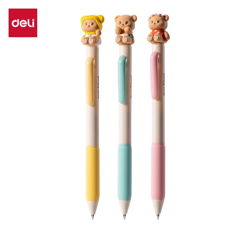 Bút Gel Bấm Deli Gấu Bơ 0.5mm Màu Đen HY004