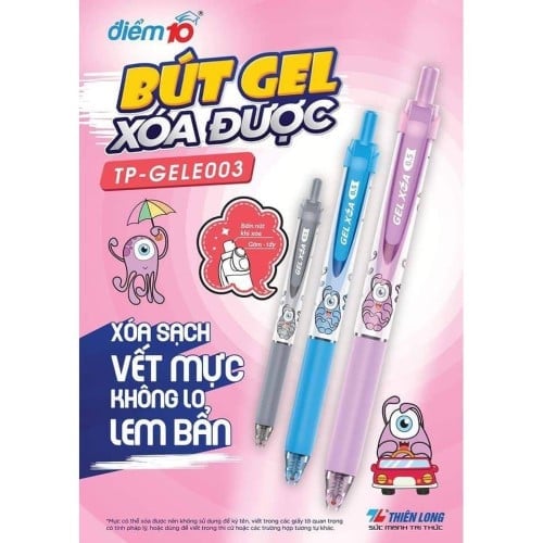 - Bút gel xóa được - Công nghệ mới trên thế giới. Mực gel xóa được bằng gôm tẩy chuyên dụng trên nắp bút