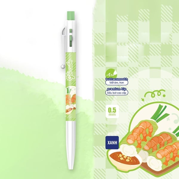 Bút Gel Buttersmooth B 0.5 mm - Thiên Long GELB-034 - Mực Xanh - Gỏi Cuốn