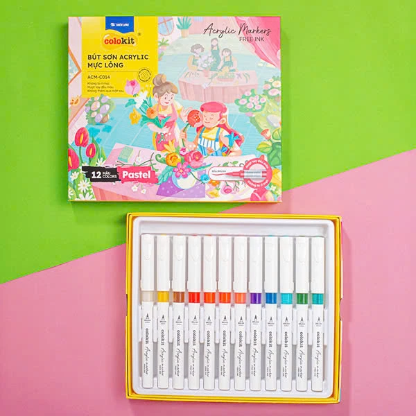 Hộp 12 Bút Sơn Acrylic Màu Pastel - Mực Lỏng - Colokit ACM-C014