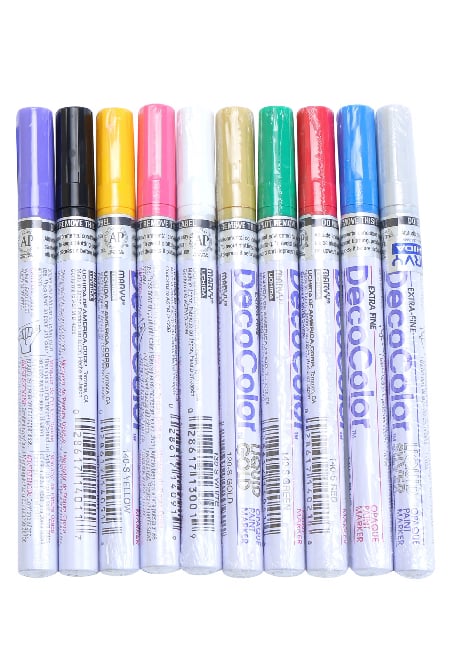 - Viết và đánh dấu được trên hầu hết các bề mặt: sắt thép, nhựa, kính, băng keo, gốm, gỗ, carton, máy móc..(sẽ không có nét outline như khi viết trên giấy)