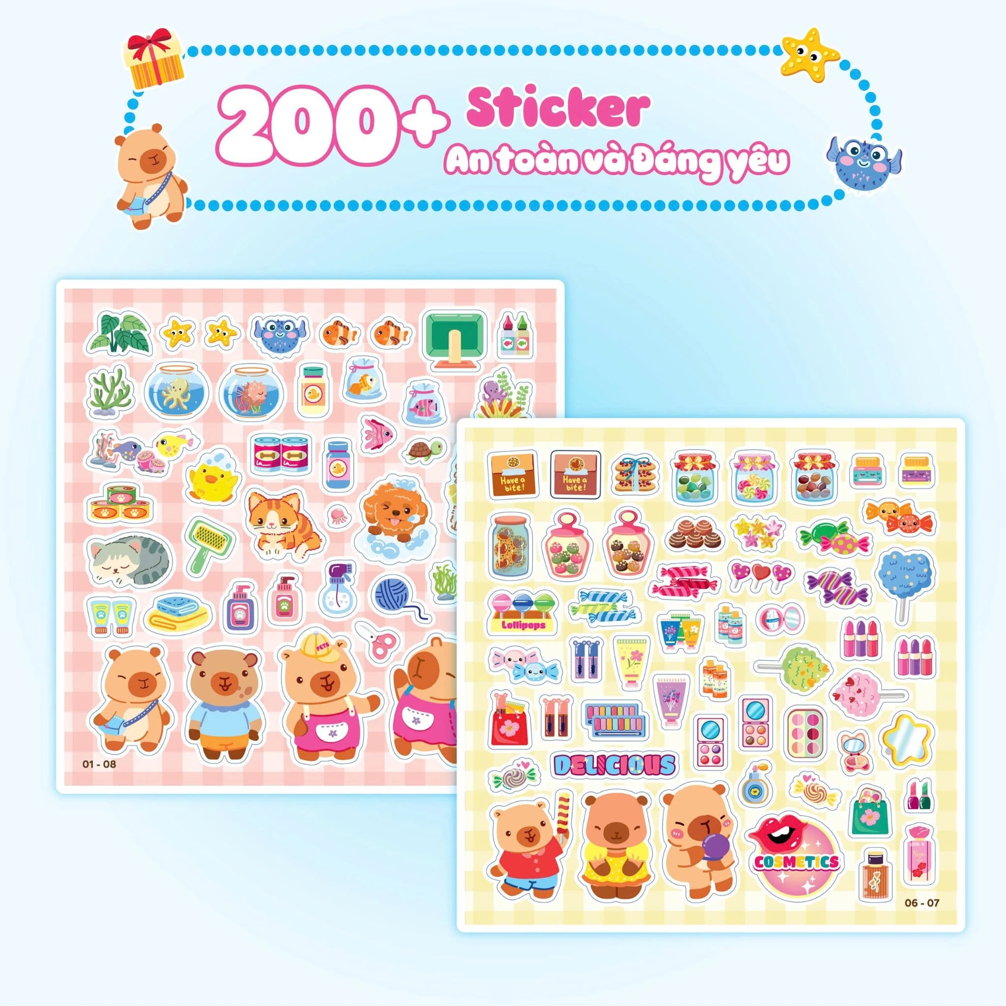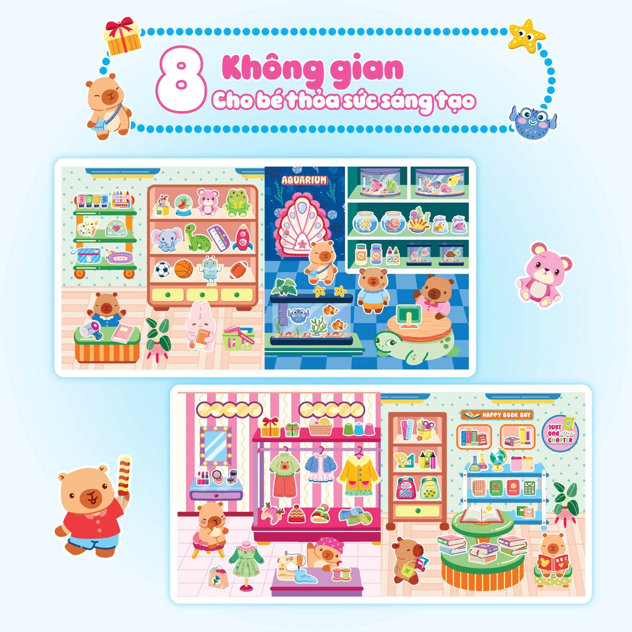 Khơi dậy trí tưởng tượng và sự sáng tạo của bé với bộ trò chơi bóc dán sticker Capybara! Bộ sản phẩm gồm 4 cuốn thú vị: Du lịch trải nghiệm, Kỳ nghỉ ở nhà, và Kinh doanh nhà hàng và Quản lý cửa tiệm, mang đến cho bé cơ hội khám phá thế giới, tổ chức kỳ nghỉ sáng tạo, và trở thành "chủ nhà hàng nhí." Với hàng trăm sticker đa dạng và đầy màu sắc, bé có thể tự do sáng tạo, nhập vai và phát triển kỹ năng kể chuyện. Đây không chỉ là trò chơi mà còn là hành trình học hỏi, giúp bé rèn luyện sự khéo léo và trí tưởng tượng phong phú. Capybara – Người bạn sáng tạo của mọi em bé!