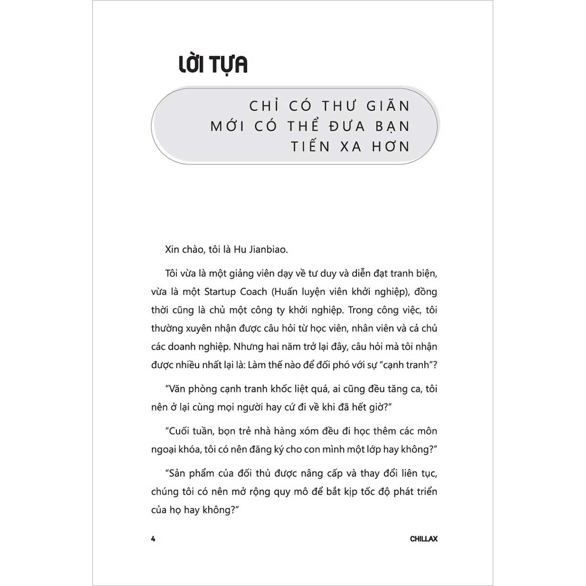 Với những phương pháp cụ thể và góc nhìn sâu sắc, tác giả Hu Jianbiao sẽ giúp bạn học cách sống chậm lại giữa guồng quay hối hả, biến thư giãn thành một kỹ năng sống chủ động thay vì chờ đợi may mắn.