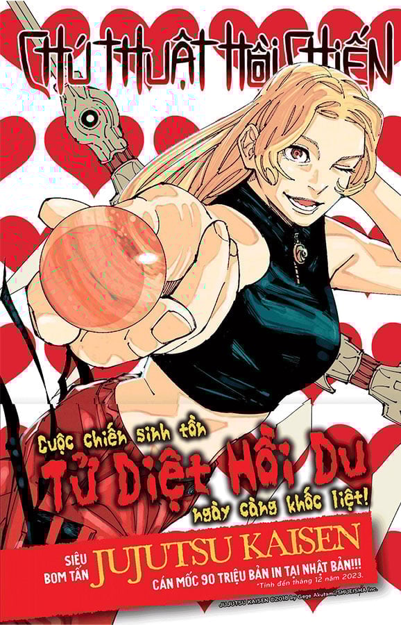 Sukuna tự xưng là “Thiên thần sa ngã”, là mục tiêu của “Thiên thần”. Trong khi nhóm Itadori còn đang mơ hồ về ý nghĩa của câu nói đó thì Tử Diệt Hồi Du ngày càng hỗn loạn bởi âm mưu của Kenjaku tại các quốc gia…!! Và cuối cùng, Kenjaku cũng đến được Hoằng Tinh Cung nơi Tengen đang trú ẩn!?