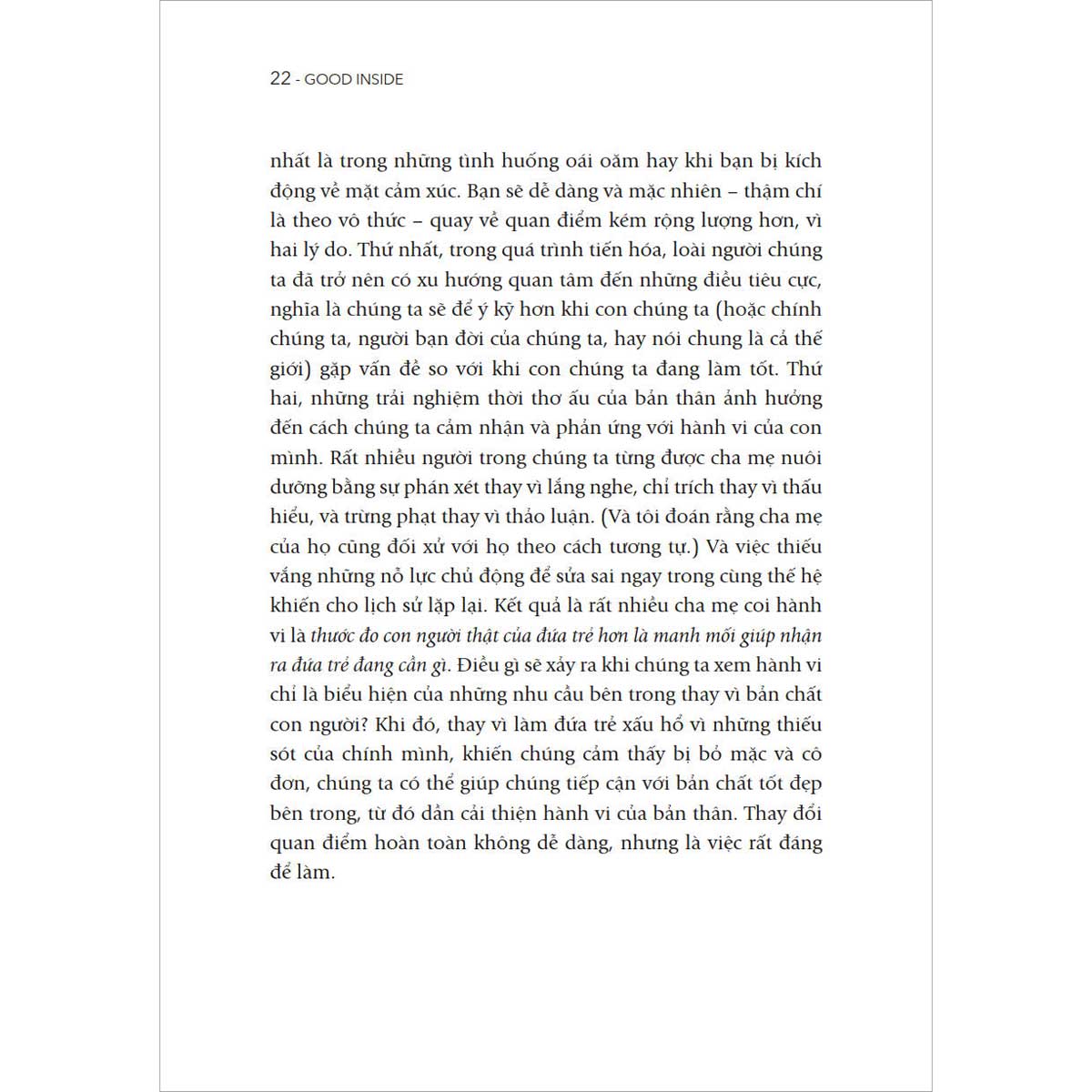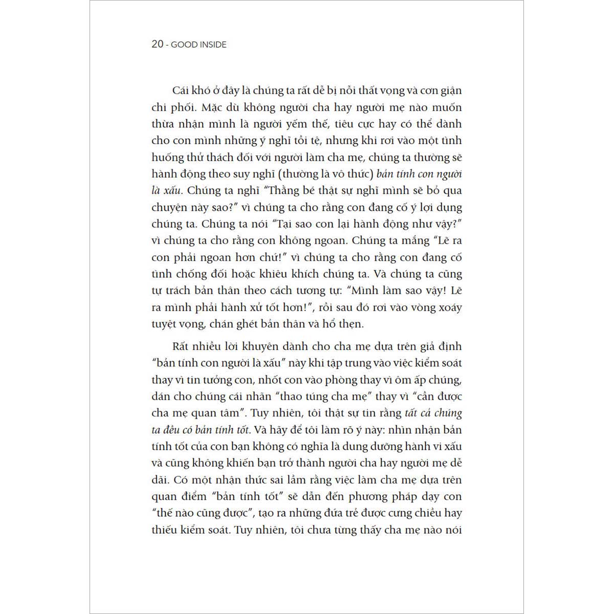 Trong “Con cái chúng ta đều tốt” (tựa gốc: Good Inside), cuốn sách bán chạy nhất theo danh sách bình chọn của New York Times, Tiến sĩ Becky mời người đọc bước vào một hành trình làm cha mẹ hoàn toàn khác – hành trình nuôi dạy con bằng sự gắn bó và lắng nghe, thay vì kiểm soát và phán xét.