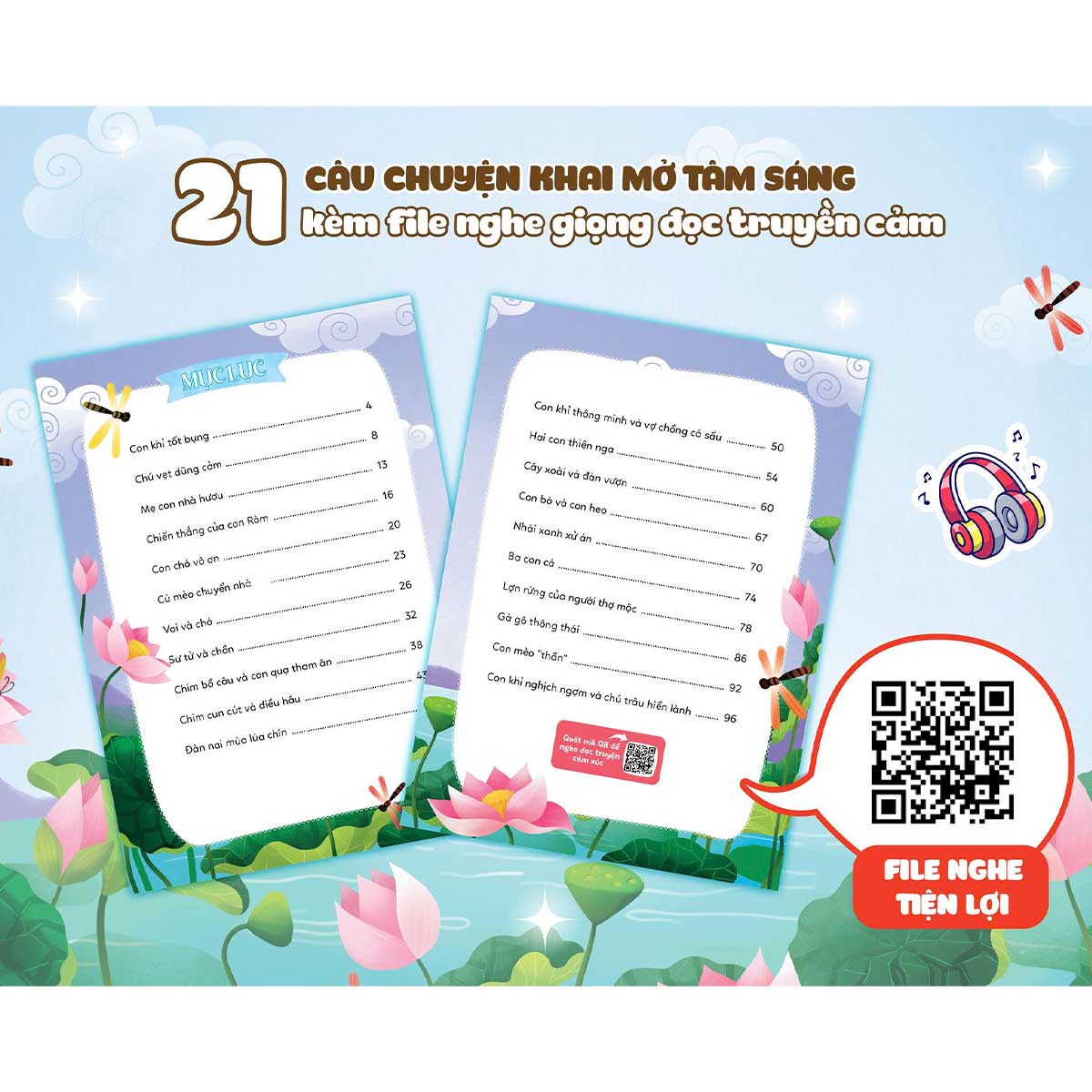 - Gieo hạt mầm thiện lành mỗi ngày: Mỗi câu chuyện nhẹ nhàng dẫn dắt bé hiểu về lòng bao dung, trắc ẩn, dũng cảm và từ bi một cách tự nhiên.