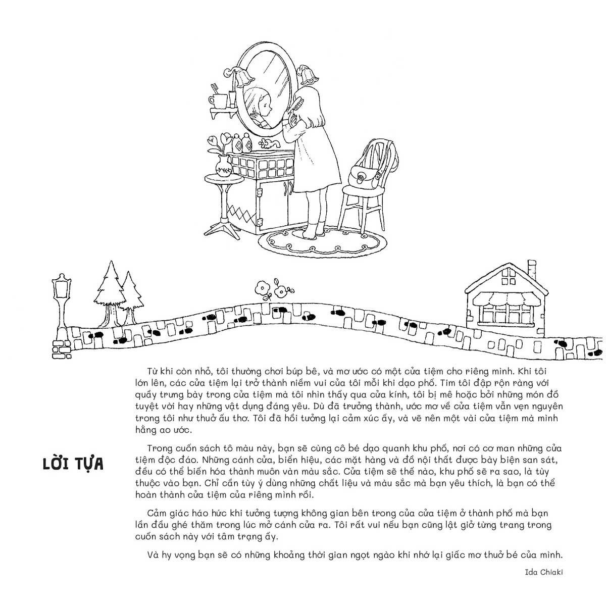 Sách tái hiện khoảng 10–12 cửa hàng khác nhau, mỗi cửa hàng là một “thế giới nhỏ” với đầy đủ chi tiết nội thất, vật dụng, khách hàng, mèo chó và cả cây cối ngoài hiên.