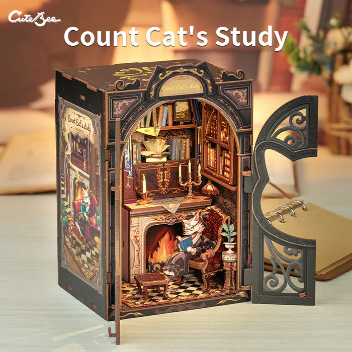 - Tên sản phẩm chính thức: CUTEBEE DIY Book Nook Kit | Count Cat's Reading Room (hoặc Cozy Cat Bookstore)