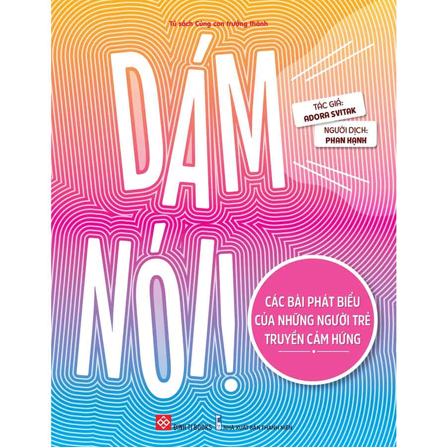 Dám nói! là cuốn sách tập hợp 45 bài phát biểu truyền cảm hứng của những bạn trẻ dũng cảm, thông minh, và đầy nhiệt huyết. Những bài diễn văn này không chỉ thể hiện sự sâu sắc trong tư duy của thế hệ trẻ mà còn khẳng định tầm quan trọng của việc lên tiếng vì những điều mà chúng ta quan tâm và bảo vệ.