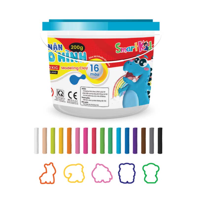 Đất Nặn Smartkids Hủ Nhựa 200G + 5 Khuôn MC01 (16 Màu/Hộp)