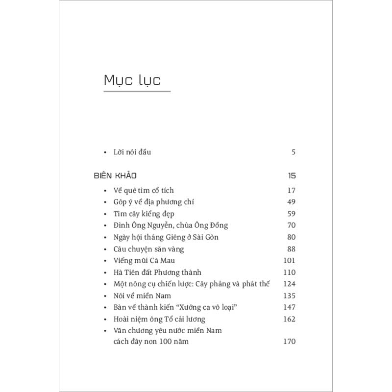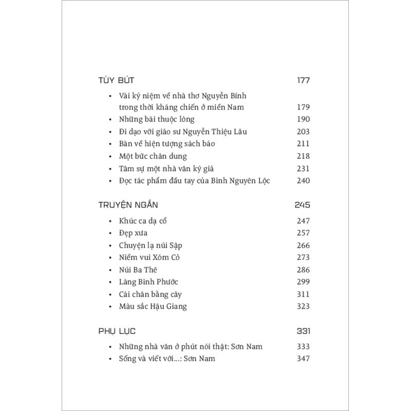 Đây là một tuyển tập gồm những bài biên khảo, tùy bút, truyện ngắn của nhà văn Sơn Nam chưa in thành sách