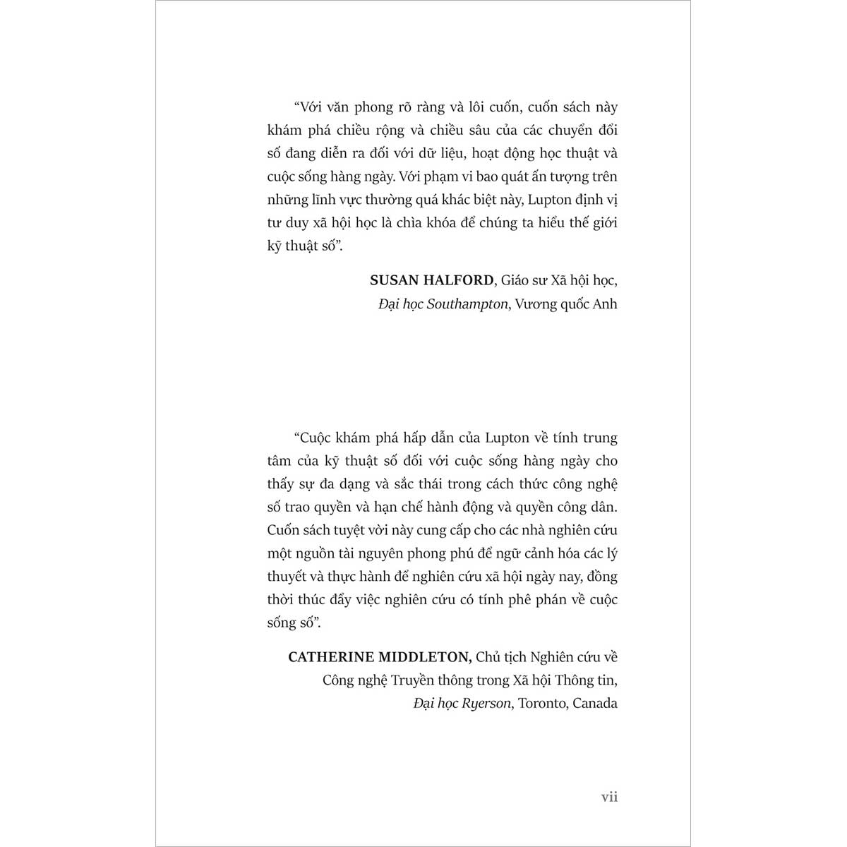 Với văn phong sắc bén và lối kể chuyện cuốn hút, Lupton đưa người đọc vào hành trình khám phá đa chiều về xã hội số - từ nền kinh tế tri thức mới, dữ liệu lớn, giáo dục đại học số hóa đến các vấn đề gây tranh cãi như quyền riêng tư, giám sát số và biến đổi của bản ngã trong không gian mạng. Điểm đặc sắc nhất của cuốn sách nằm ở góc nhìn sâu rộng: công nghệ số không đơn thuần là công cụ mà đã trở thành lực lượng xã hội mạnh mẽ, đang định hình lại cấu trúc xã hội, các mối quan hệ và chuẩn mực văn hóa chúng ta đang sống.