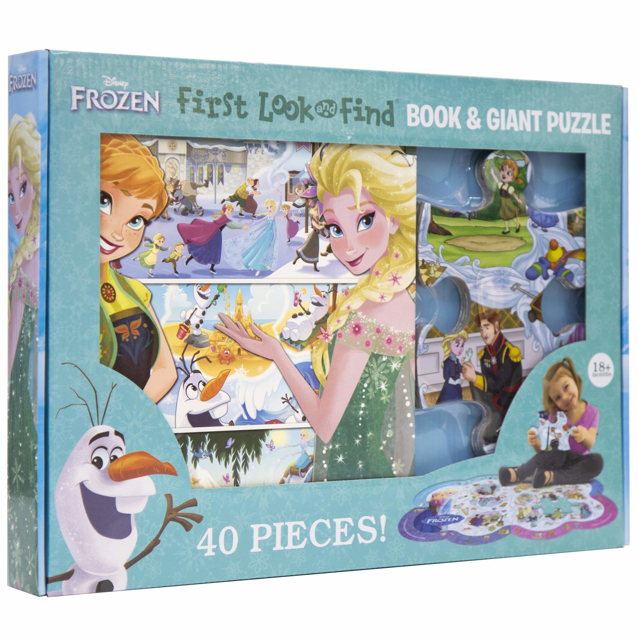 Little Frozen fans will love this book and puzzle set. The First Look and Find book features exciting scenes starring Elsa, Anna, Olaf and more great Frozen characters. Search for hidden objects and surprises, then turn to the back of the book for additional Look and Find activities. The giant shaped 40-piece puzzle is two puzzles in one: a busy inner puzzle, plus an outer puzzle border that contains "find'ems" for your child to spot in the puzzle scene.