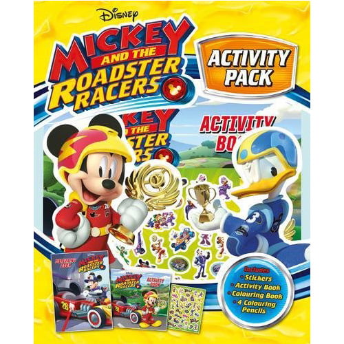 Ready, set, go with Mickey & the Roadster Racers awesome activity bag. With so many puzzles and games to complete, Mickey fans will be entertained for hours. Includes a fun-filled activity book, a colouring book, sticker sheets and 4 colouring pencils.