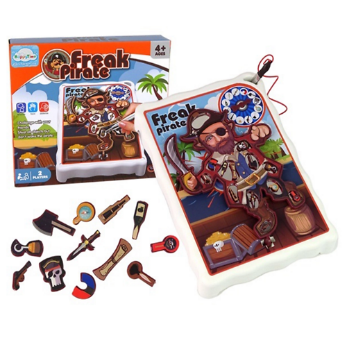 Trải nghiệm cảm giác hồi hộp của đồ chơi điện cướp biển nào! Lần lượt mỗi lần chơi bạn cần quay mũi tên để chọn đồ vật cần loại bỏ. Ghi điểm bằng cách chọn thành công các đồ vật mà không làm cướp biển kia di chuyển. Với hiệu ứng âm thanh vui nhộn và ánh sáng rực rỡ, người chơi cuối cùng có nhiều điểm nhất sẽ chiến thắng! Mang lại niềm vui cho cả gia đình với trò chơi thú vị về kỹ năng, may mắn và chiến lược. Mọi người sẽ được giải trí khi bạn xem sự hồi hộp diễn ra!