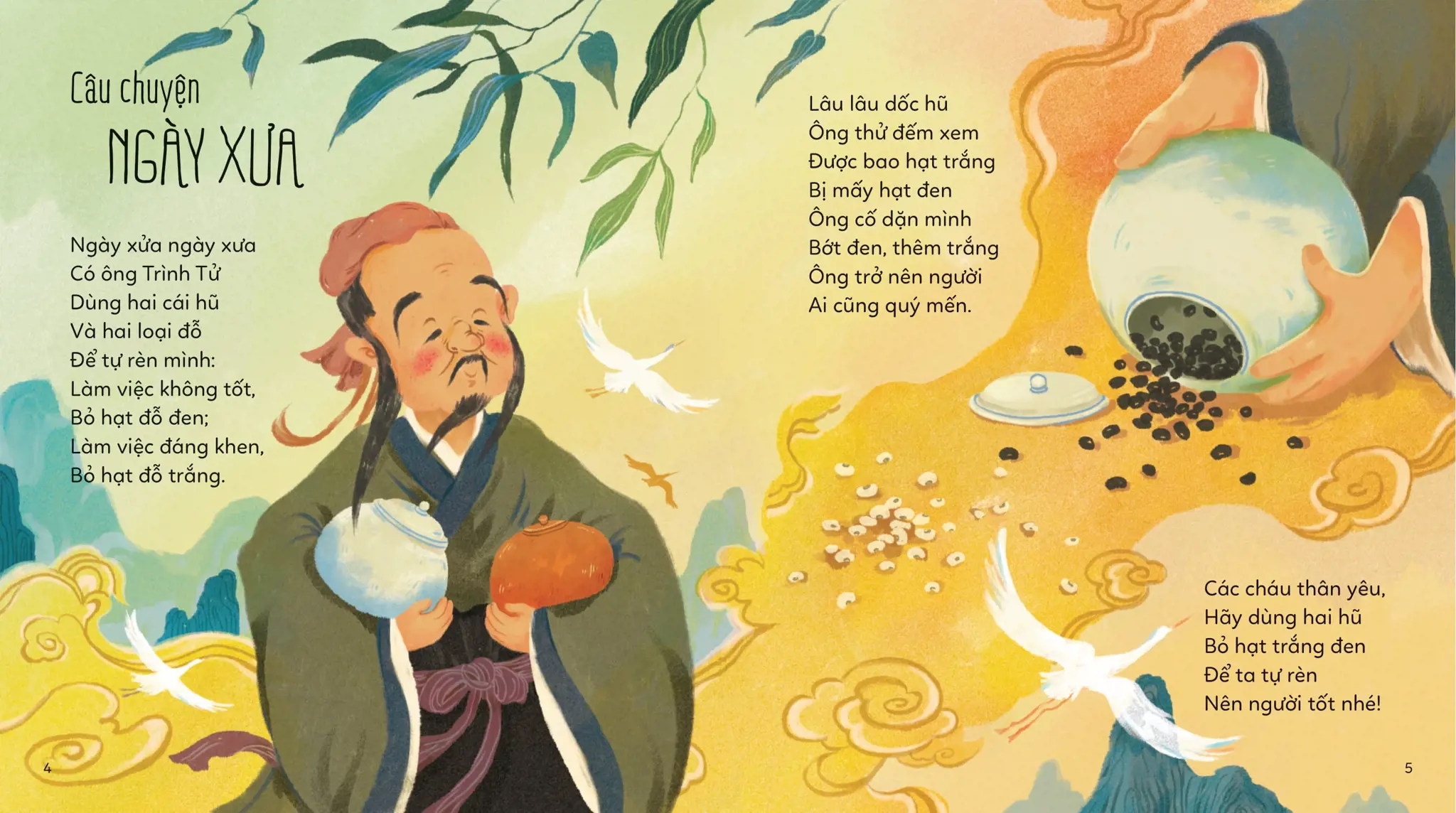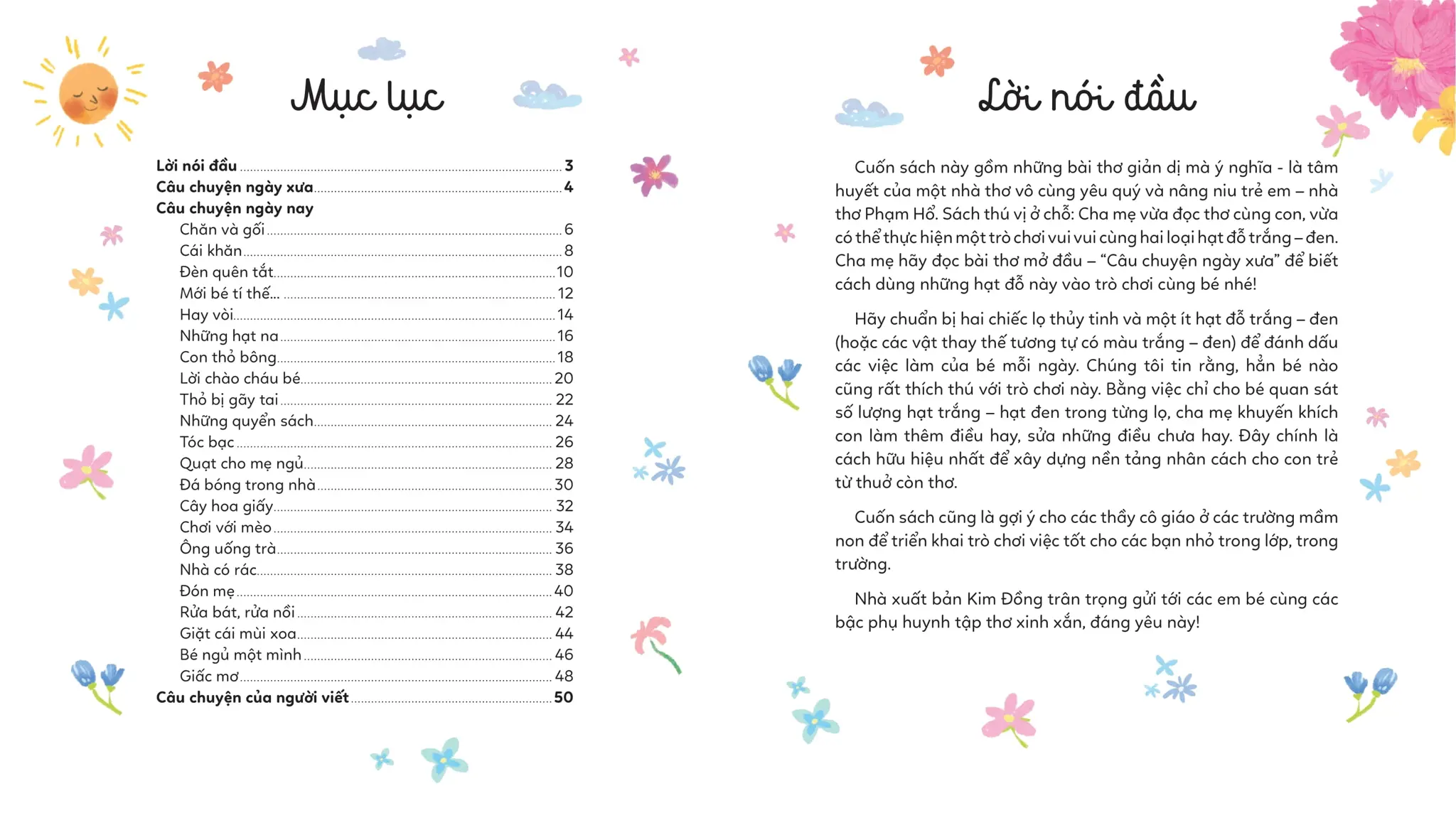 Cuốn sách này gồm những bài thơ giản dị mà ý nghĩa - là tâm huyết của một nhà thơ vô cùng yêu quý và nâng niu trẻ em – nhà thơ Phạm Hổ. Sách thú vị ở chỗ: Cha mẹ vừa đọc thơ cùng con, vừa có thể thực hiện một trò chơi vui vui cùng hai loại hạt đỗ trắng – đen. Trò chơi ấy như thế nào, hãy cùng đọc thử nhé!