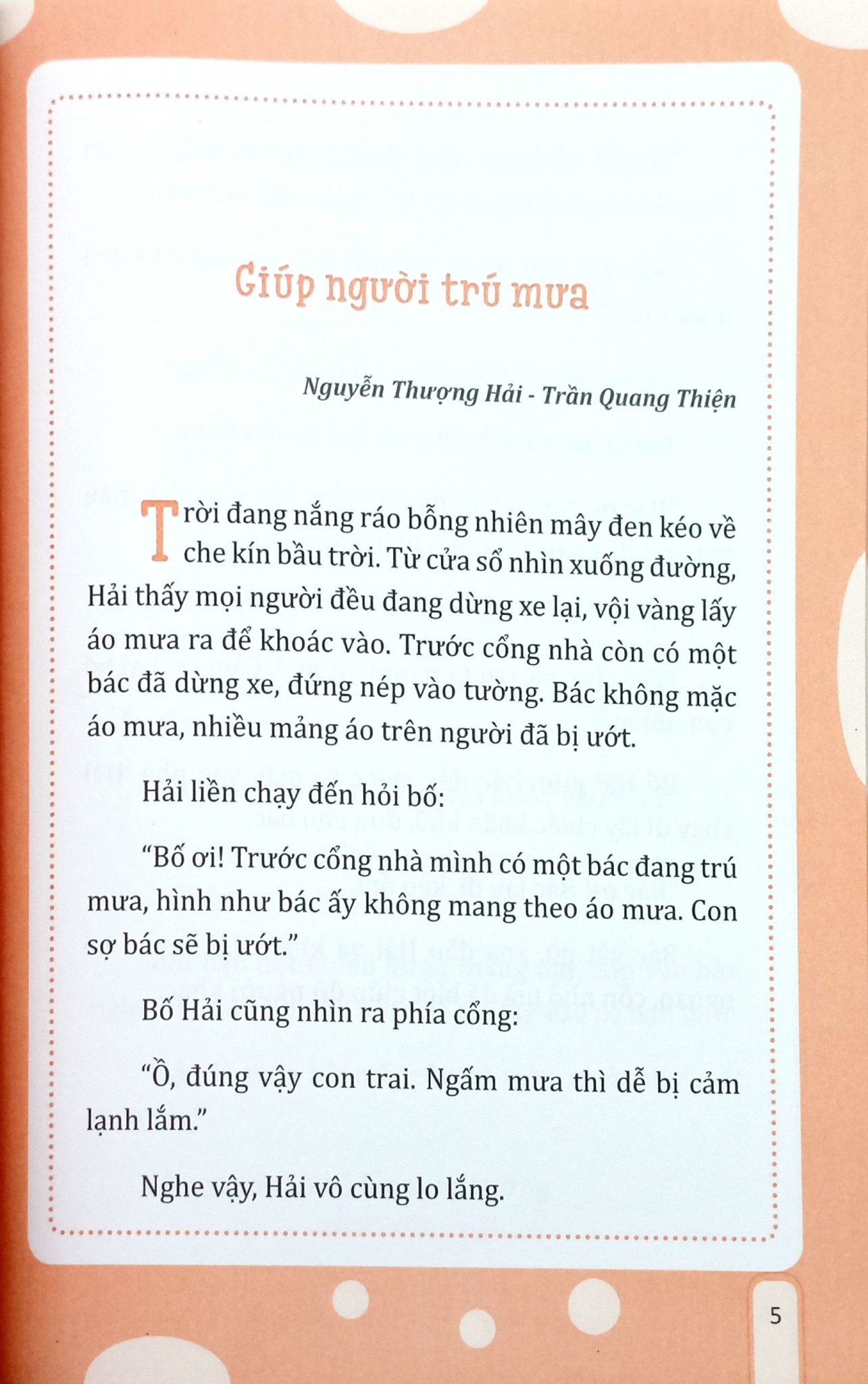 … Ngày sinh nhật cậu, cha lấy con heo đất ra, chuẩn bị đập thì cậu vội ngăn lại. Cậu chạy xuống bếp lấy con heo đất mà cậu để dành một tháng nay, trên đó có dòng chữ nhỏ xíu “Mua dép cho cha”...