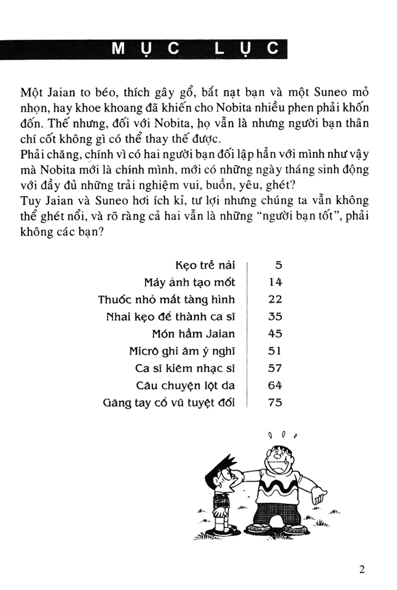 Một Jaian to béo, thích gây gổ, bắt nạt bạn và một Suneo mỏ nhọn, hay khoe khoang đã khiến cho Nobita nhiều phen phải khốn đốn. Thế nhưng, đối với Nobita, họ vẫn là những người bạn thân chí cốt không có gì có thể thay thế được. Phải chăng, chính vì có hai người bạn đối lập hẳn với mình như vậy mà Nobita mới là chính mình, mới có những ngày tháng sinh động với đầy đủ những trải nghiệm vui, buồn, yêu, ghét? Tuy Jaian và Suneo hơi ích kỉ, tư lợi nhưng chúng ta vẫn không thể ghét nổi, và rõ ràng cả hai vẫn là những "người bạn tốt", phải không các bạn?