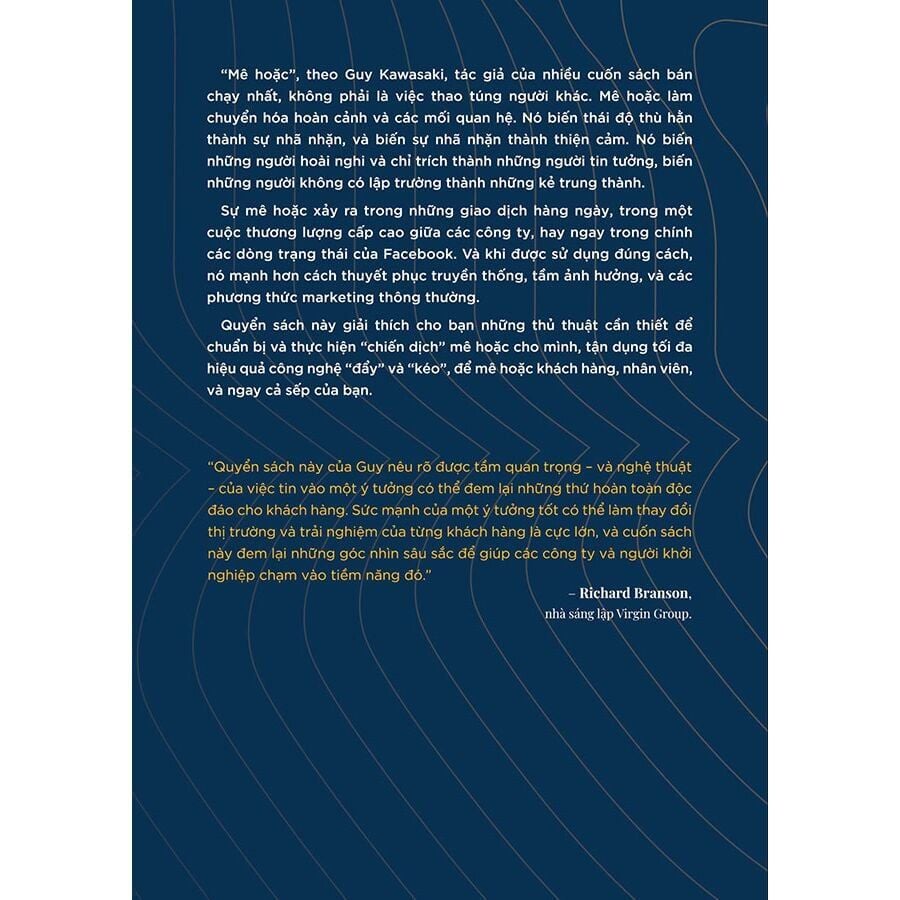 “Mê hoặc”, theo Guy Kawasaki, tác giả của nhiều cuốn sách bán chạy nhất, không phải là việc thao túng người khác. Mê hoặc làm chuyển hóa hoàn cảnh và các mối quan hệ. Nó biến thái độ thù hằn thành sự nhã nhặn, và biến sự nhã nhặn thành thiện cảm. Nó biến những người hoài nghi và chỉ trích thành những người tin tưởng, biến những người không có lập trường thành những kẻ trung thành.