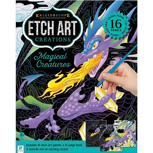Enter a world of magic and wonder with Kaleidoscope Etch Art Creations: Magical Creatures! Create a magnificent poster, a beautiful photo-frame and more using the etch-art panels and stylus! This kit offers an exciting way to explore creativity and make awesome works of art.