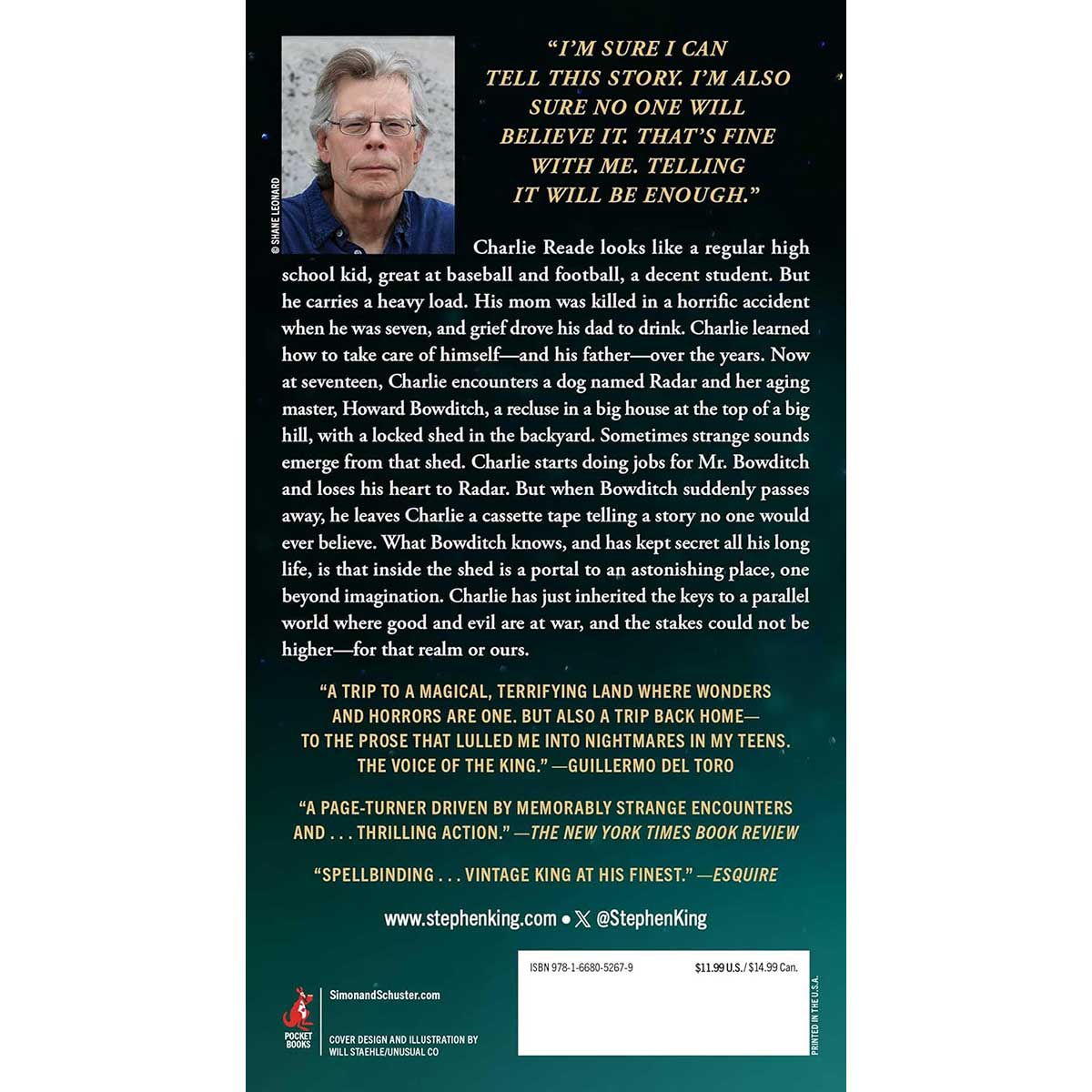 Charlie Reade looks like a regular high school kid, great at baseball and football, a decent student. But he carries a heavy load. His mom was killed in a horrific accident when he was seven, and grief drove his dad to drink. Charlie learned how to take care of himself—and his dad. When Charlie is seventeen, he meets a dog named Radar and her aging master, Howard Bowditch, a recluse in a big house at the top of a big hill, with a locked shed in the backyard. Sometimes strange sounds emerge from that shed.