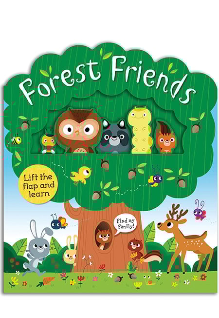 Forest Friends is a tree-shaped board book with five cute woodland animals on tabs. Inside, there is lots of lift-and-learn fun, with big gatefold flaps to open out and discover the animals that live at the top of the tree, in the leaves, and down to the branches, the trunk and the roots.