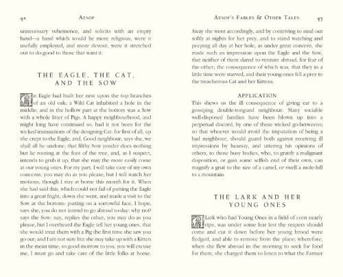 Các truyện ngụ ngôn của Aesop đã tồn tại gần hai thiên niên kỷ, được truyền miệng trước, sau đó mới được chép lại thành nhiều hình thức khác nhau và lần đầu tiên xuất bản bằng tiếng Anh vào năm 1484. Những câu chuyện này vẫn thu hút độc giả hiện đại nhờ thông điệp đạo đức sâu sắc và các nhân vật sinh động – chẳng hạn như câu chuyện rùa và thỏ, hay cậu bé chăn cừu dối trá vẫn được kể rộng rãi đến ngày nay.