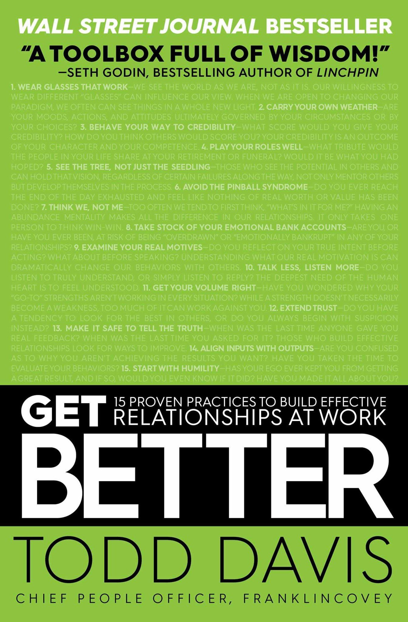 Strengthen relationships and improve communications skills: In Get Better: 15 Proven Practices to Build Effective Relationships at Work, Chief People Officer Todd Davis moves beyond the adage that an organization's greatest assets are its people. Instead, he argues that relationships drive professional and personal effectiveness—and, in the end, create a culture that can become an organization's competitive advantage.