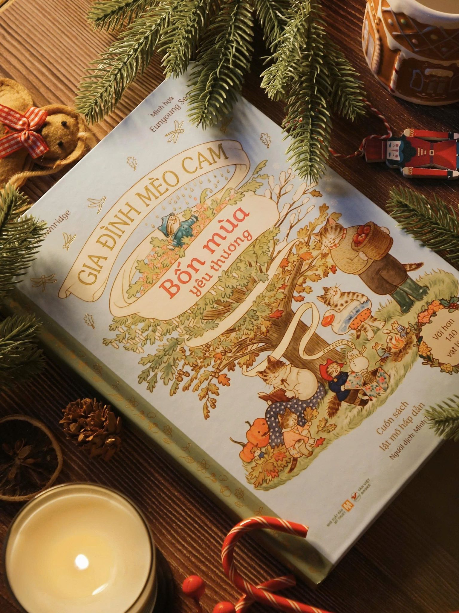 Bốn mùa yêu thương đưa bạn đọc cùng gia đình Mèo Cam khám phá những hoạt động thú vị trong suốt bốn mùa trong năm - từ làm vườn, xây lâu đài cát, khắc bí ngô đến chơi tuyết và đón năm mới. Với minh họa sinh động, phong cách hoài cổ và vô số chi tiết tinh tế, cuốn sách giúp trẻ cảm nhận vẻ đẹp của thiên nhiên, học cách tận hưởng niềm vui giản dị mỗi mùa, đồng thời gắn kết tình cảm gia đình qua những trải nghiệm ấm áp và gần gũi.